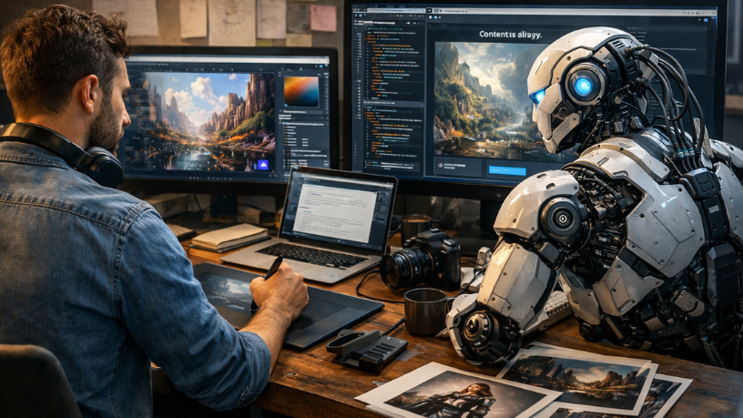 Diante desse cenário, a inteligência artificial se apresenta como uma força ambígua. Por um lado, amplia horizontes criativos e reduz barreiras de entrada. Por outro, intensifica a concorrência, pressiona a remuneração e redefine o papel dos profissionais. O desafio, portanto, não está em resistir à tecnologia, mas em compreender como utilizá-la de forma estratégica e sustentável.